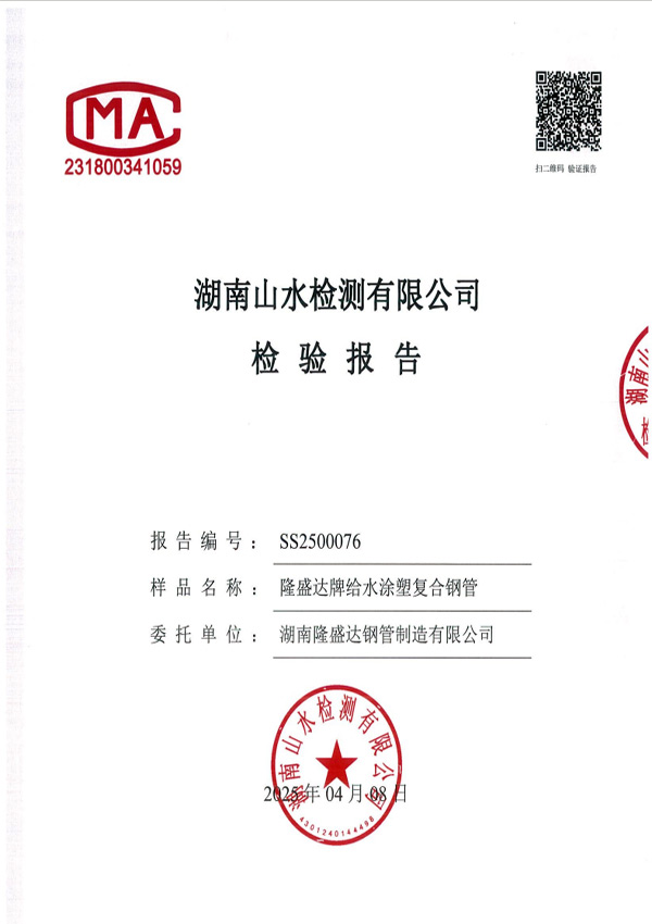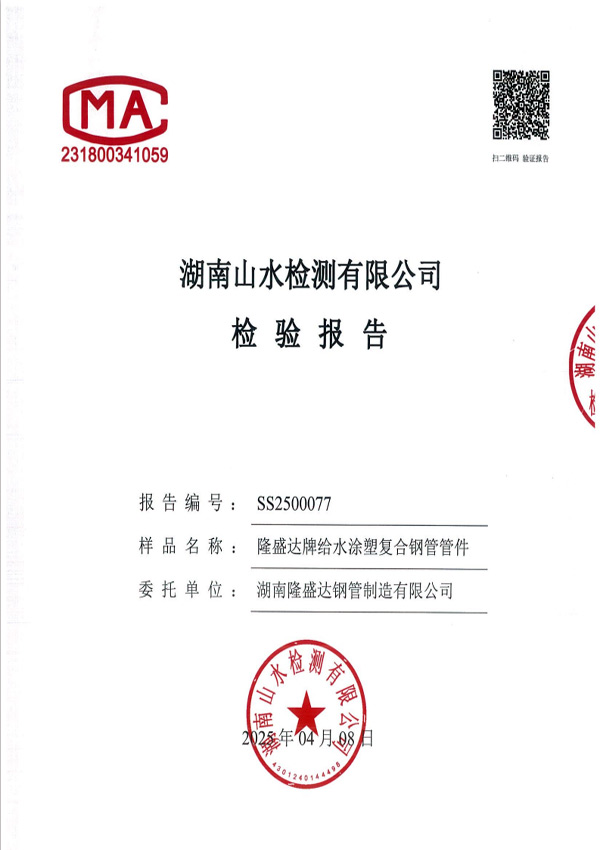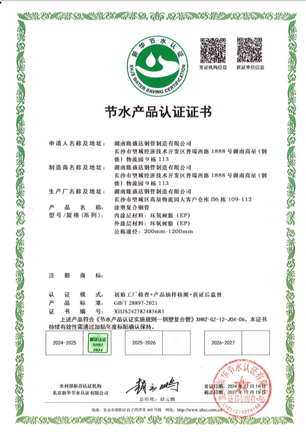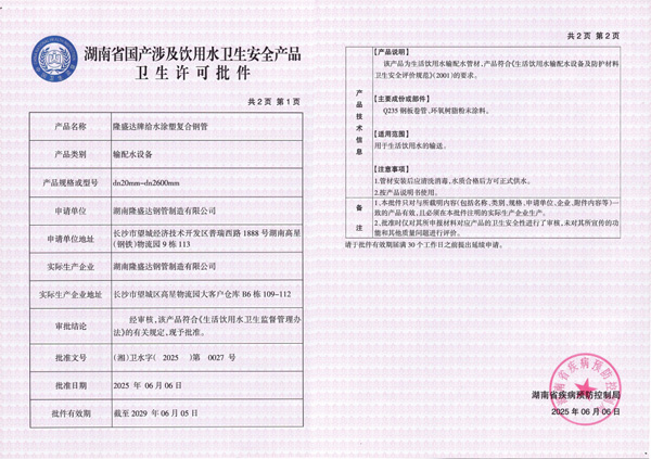 隆盛达牌给水涂塑复合钢管管材&管件涉水批件